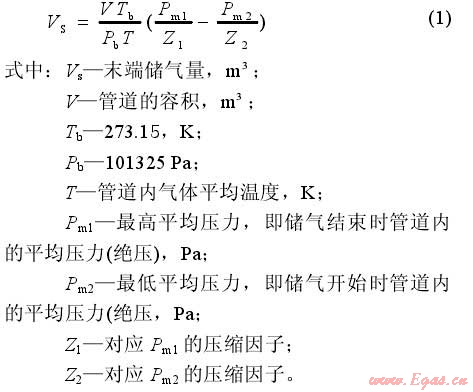 利用高壓、次高壓供氣管道末端儲氣可根據(jù)公式(1)計算: