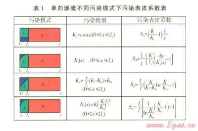 單向滲流不同污染模式下污染表皮系數(shù)的計算如表1所示。