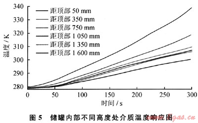 利用FLUENT軟件對處于池火災環(huán)境下的LPG儲罐熱響應過程進行了數值模擬,計算結果與實驗結果吻合。得出以下結論: