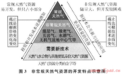 非常規(guī)天然氣資源的開發(fā)特點如圖3所示。