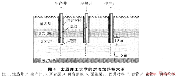利用高溫?zé)N類氣體對(duì)流加熱油頁(yè)巖開(kāi)采油氣技術(shù)是太原理工大學(xué)發(fā)明的一種原位開(kāi)采技術(shù)(圖4)。