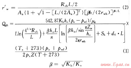 對(duì)于水平井,首先計(jì)算水平的有效井筒半徑,再計(jì)算水平井地層出氣量[8]。