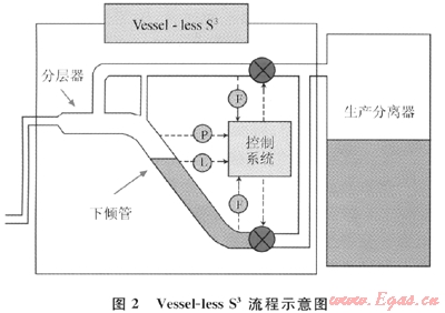 Kovalev報(bào)道了S3,通過現(xiàn)場儀表測量壓力、流量和液位等參數(shù),再通過壓力和液位觸發(fā)器來控制各閥門的開度,對(duì)小型預(yù)分離器液位和排氣量進(jìn)行調(diào)節(jié),從而使流動(dòng)更加穩(wěn)定[3]。2003年S3在北海2個(gè)平臺(tái)投入使用。