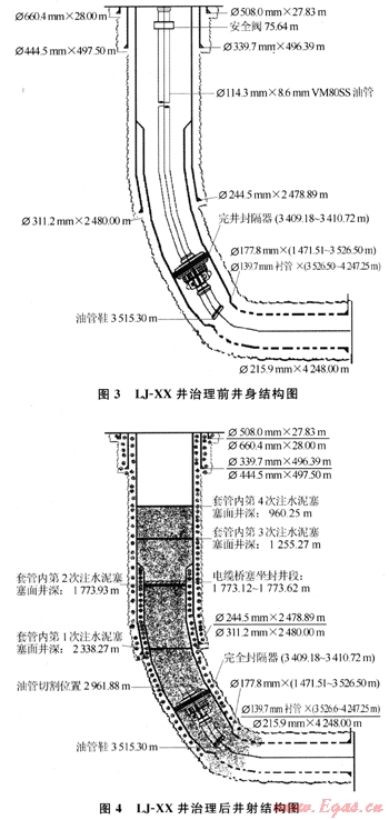 四川油氣田組織專家組對可能存在風險的高含硫氣井進行了重新審視和評估,并確定了一批高含硫氣井必須實施永久性封閉。下面介紹LJ-XX井治理典型實例。