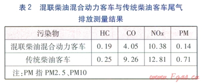 由表2可知:柴油混合動(dòng)力客車的各種污染物排放均低于傳統(tǒng)柴油客車。