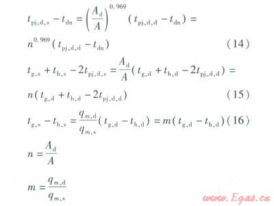 由式(14)~(16)計算出的供、回水溫度tg、th,s才是所需要的設計供回水溫度。在地板實際散熱面積條件下,將式(10)中的tg,d替換成tg,s,將th,d替換成th,s,將tpj,d,d替換成tpj,d,s,并由式(14)~(16)整理得到地板實際散熱面積及實際室外溫度條件下的供回水溫度調(diào)節(jié)公式: