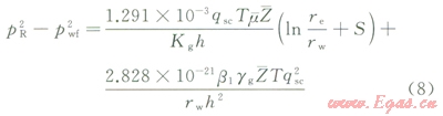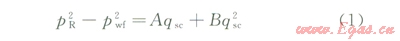 由氣水兩相流動時,氣井穩(wěn)定狀態(tài)條件下以壓力平方形式表示的氣相二項式產(chǎn)能方程式: