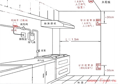 整個控制系統(tǒng)大約在1100元左右(一個工業(yè)氣體探測器、一個控制閥門一個語音提示)配安裝示意圖。