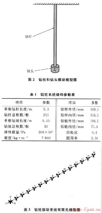 目前國(guó)內(nèi)外專家對(duì)石油鉆井中鉆桿的失效原因、振動(dòng)特性等方面的力學(xué)機(jī)理進(jìn)行了研究[4~5],而深海大尺寸繩索取心專用鉆柱的受力與工作機(jī)理比石油鉆井用鉆柱更為復(fù)雜。因此需要全面深入的綜合研究。筆者主要結(jié)合當(dāng)前國(guó)內(nèi)外振動(dòng)理論方面的研究成果,從深海天然氣水合物鉆探取心的實(shí)際情況出發(fā),對(duì)鉆柱的振動(dòng)進(jìn)行模態(tài)分析,從理論上解決鉆柱的共振問(wèn)題,以期對(duì)深海天然氣水合物的成功取樣提供幫助。