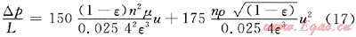 計(jì)算顆粒床層阻力采用經(jīng)典Ergun方程: