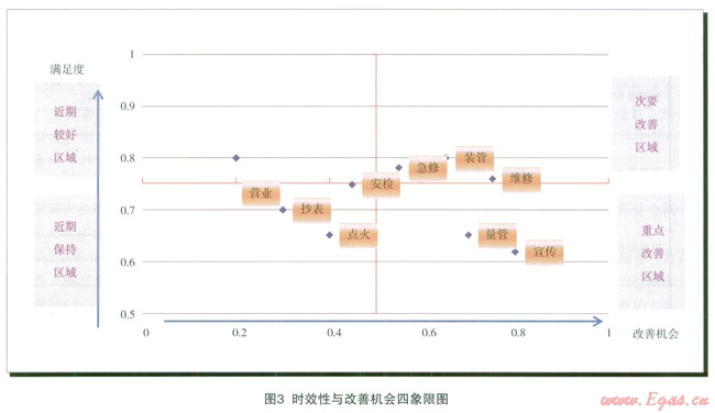 從穩(wěn)定性、時(shí)效性和便捷性與服務(wù)改善機(jī)會(huì)的象限圖,導(dǎo)出客戶關(guān)注的需求點(diǎn),識(shí)別…近期服務(wù)的重點(diǎn)改善和次要改善機(jī)會(huì)兩方面內(nèi)容,采取相應(yīng)的改進(jìn)措施(見(jiàn)表2和表3)。