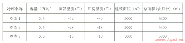 為便于計(jì)算,本文以總?cè)萘繛?span lang="EN-US">1.5萬噸的冷庫為例進(jìn)行具體計(jì)算,并將此冷庫設(shè)計(jì)成三座庫容量均為5000噸庫房溫度分別為30℃、-l8℃、-l0℃的冷庫。根據(jù)蒸發(fā)溫度與庫房溫度的關(guān)系,三座冷庫的蒸發(fā)溫度分別為-42℃、-28℃和-l5℃。其基本設(shè)計(jì)參數(shù)如表l。