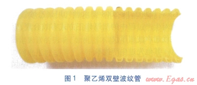 波紋管管材為中密度聚乙烯(MDPE)材料,一般適宜應(yīng)用在低壓管道。有別于普通聚乙烯管,聚乙烯雙壁波紋管見圖1。波紋管采用較薄的雙壁設(shè)計,外壁呈波浪狀,能維持管道形狀,防止穿越彎頭時管道折疊;內(nèi)壁較平滑,使燃氣流動時摩擦造成的壓力損失降至最低。波紋管有相當(dāng)高的柔韌性,大大加強插管時穿過彎頭的能力,最多可穿過2~3個90°彎頭,每次插管操作可更換10~15m長的鍍鋅鋼管。使用波紋管修復(fù)取代傳統(tǒng)開挖修復(fù),能減少地面開挖及對庭院環(huán)境的破壞,還可降低修復(fù)成本,加快修復(fù)進度。