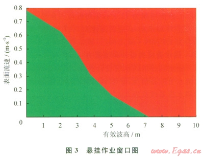 隔水管懸掛作業(yè)窗口如圖3所示(具體數(shù)據(jù)略)。圖3中綠色部分為允許懸掛作業(yè)區(qū)域,紅色區(qū)域為不允許在當(dāng)前配置下進(jìn)行硬懸掛作業(yè)的區(qū)域。