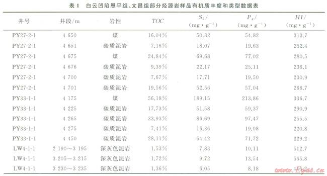 白云凹陷面積超過20000km2,主要發(fā)育始新統(tǒng)文呂組和恩平組湖相、淺湖—沼澤相、三角洲相烴源巖。從白云凹陷邊緣到沉積中心,文昌組烴源巖(暗色泥巖)厚度介于200~1700m,恩平組烴源巖厚度介于200~1300m[8]。