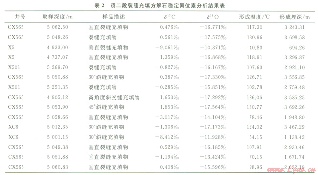 2.1.2裂縫充填物穩(wěn)定同位素分析確定裂縫形成期次
