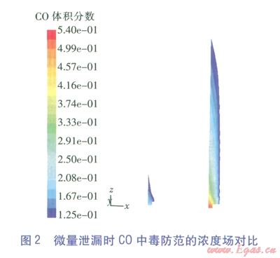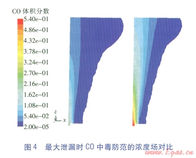 值得一提的是,火災(zāi)防范時(shí)只將爆炸極限列為危害區(qū)間,這符合不發(fā)生明火時(shí)的氣體冷態(tài)擴(kuò)散情況,但一旦發(fā)生燃燒,C0的濃度場(chǎng)將發(fā)生極大變化,還將產(chǎn)生對(duì)人員窒息的煙氣。FLUENT作為一款功能強(qiáng)大的軟件,也能模擬燃燒情況(俗稱熱態(tài)研究),但這將大大增加參數(shù)設(shè)定的復(fù)雜性和計(jì)算過程冗時(shí)性,這是工程計(jì)算力求避免的,但應(yīng)是理論研究的改進(jìn)方向。