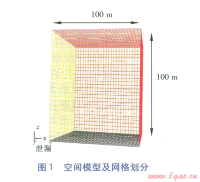 空間模型(見圖l)長(zhǎng)200m、寬200m、高l00m,在200m×200m的平面中心設(shè)置1個(gè)2m×2m