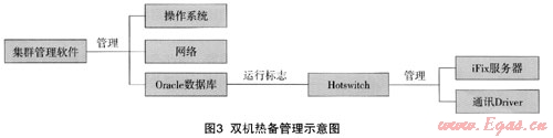 整個系統(tǒng)的切換由集群管理軟件和HotSwitch軟件管理,其關(guān)系如圖3。
