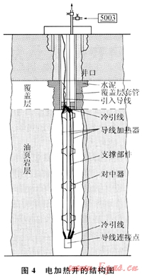 引入導(dǎo)線將加熱元件耦聯(lián)到地層表面上。加熱元件耦聯(lián)到位于地層的底層上或附近的接觸元件。接觸元件耦聯(lián)到接觸部分中的接觸器上,以使支腿間彼此電氣耦聯(lián)以形成三元結(jié)構(gòu)。三元結(jié)構(gòu)耦聯(lián)到水平連接井。該加熱器的優(yōu)點(diǎn)是電氣耦聯(lián)多樣化,較易實(shí)施,缺點(diǎn)是直線排布三元結(jié)構(gòu)不利于加熱頁(yè)巖層。 2.2 電加熱井的設(shè)計(jì)