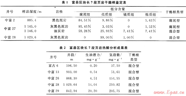 可以看出:長(zhǎng)7段頁(yè)巖有機(jī)質(zhì)類型多為腐泥型、混合型。