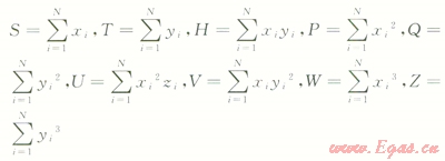 式中N為參與擬合計算的特征點的個數(shù),其他參數(shù)計算式如下: