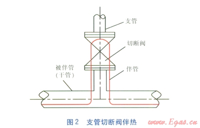 i.當(dāng)被伴管為干管,其支管不需伴熱時,支管上的第一個切斷閥應(yīng)予以伴熱,見圖2。