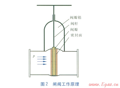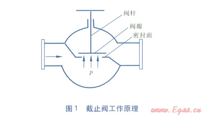 供熱管道上常用的大口徑閥門有金屬硬密封蝶閥、閘閥、截止閥,通常DN 200mm及以下口徑的閥門宜采用截止閥,DN 250~600mm口徑宜采用閘閥,DN 700mm及以上口徑宜采用多層金屬硬密封蝶閥。對于0.6MPa以下的供熱管道,截止閥的口徑可用到DN 400mm。這是由于對于同等口徑的閥門,截止閥的密封面積最大,密封面積越大,閥門就越耐用,因此盡可能采用截止閥。但截止閥的缺點(diǎn)是作用在閥瓣上的壓力p所產(chǎn)生的力直接作用在閥桿的軸向上(見圖l),閥門的口徑越大,作用在閥桿軸向上的推力越大,因此,截止閥的口徑不宜過大。市場上也沒有很大口徑的截止閥。