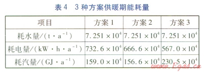 3種方案的造價(jià)見(jiàn)表3,供暖期能耗量見(jiàn)表4。