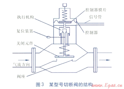 燃氣切斷閥作為城鎮(zhèn)燃氣輸配系統(tǒng)中重要的安全設(shè)備,廣泛地應(yīng)用于燃氣輸配廠站、各級調(diào)壓站和調(diào)壓箱內(nèi)。燃氣切斷閥安裝于調(diào)壓器的上游管道上,其主要功能是,當調(diào)壓器出現(xiàn)工作異常情況而導(dǎo)致出口壓力過高或過低時,及時切斷燃氣通路(超壓切斷或欠壓切斷),確保下游用戶和設(shè)備的用氣安全[1-2]。城鎮(zhèn)燃氣切斷閥一旦關(guān)閉后,一般需要人工復(fù)位,不能自動開啟[3]。切斷閥的質(zhì)量和性能直接影響到城鎮(zhèn)燃氣輸配系統(tǒng)的安全可靠性。
