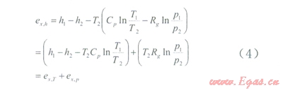 由(4)式可以看出,穩(wěn)流物質(zhì)的用可分解為兩部分,即在某一壓力下系統(tǒng)與環(huán)境之間因熱不平衡而具有的溫度用ex,T和在環(huán)境溫度時(shí)系統(tǒng)與環(huán)境之間因力不平衡而具有的壓力用ex,T。分析表明天然氣在高中壓降壓過(guò)程中可回收的最大壓力用為