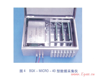 BGK-ICR0-40型數(shù)據(jù)采集儀見(jiàn)圖4,主要技術(shù)指標(biāo)見(jiàn)表l。BGK-MICR0-40型數(shù)據(jù)采集儀主要功能為:遠(yuǎn)程控制和數(shù)據(jù)采集功能?,F(xiàn)場(chǎng)操作功能:預(yù)留有與便攜式計(jì)算機(jī)的接口,可實(shí)現(xiàn)現(xiàn)場(chǎng)標(biāo)定、調(diào)試以及數(shù)據(jù)采集等功能。實(shí)時(shí)時(shí)鐘管理:為定時(shí)測(cè)量、自動(dòng)儲(chǔ)存等功能提供時(shí)間基準(zhǔn)。斷電保護(hù):所有參數(shù)和監(jiān)測(cè)數(shù)據(jù)儲(chǔ)存在專(zhuān)用非易失性儲(chǔ)存器中,可確保斷電后參數(shù)和數(shù)據(jù)的安全??估讚簦涸陔娫聪到y(tǒng)、通信線路接口、模擬輸入引線等處設(shè)置了有效的抗雷擊電路??闺姶鸥蓴_:模塊采用金屬盒封裝,在電路設(shè)計(jì)上對(duì)通信接口采用光電隔離技術(shù),具備很強(qiáng)的抗電磁干擾能力。智能化測(cè)量功能:可根據(jù)要求實(shí)現(xiàn)定點(diǎn)測(cè)量、定時(shí)測(cè)量、即時(shí)測(cè)量等多種測(cè)量方式。多種供電方式:可實(shí)現(xiàn)電池及220V交流電源供電,內(nèi)置可充電免維護(hù)電池,保證在外部供電中斷情況下繼續(xù)正常運(yùn)行168h以上。