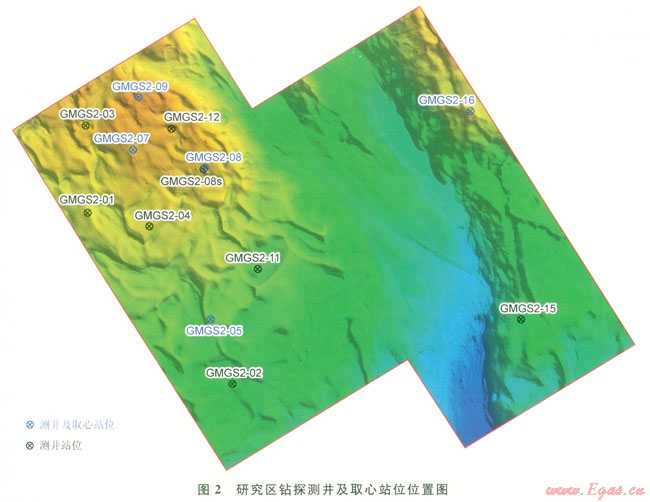 5)GMGS2-09井。水深664m,該站位海底發(fā)育大量自生碳酸鹽巖,9~21mbsf層段發(fā)育結(jié)核狀水合物。