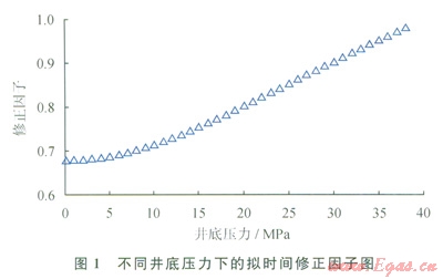 氣體具有強(qiáng)可壓縮性,其黏度(mg)、偏差因子(Zg)、體積系數(shù)(Bg)等都是關(guān)于壓力的強(qiáng)非線性函數(shù),如果直接對(duì)氣體滲流控制方程中的擴(kuò)散系數(shù)進(jìn)行強(qiáng)行近似必然會(huì)引起較大的誤差。使用擬時(shí)間函數(shù)(tg)能夠?qū)怏w滲流問(wèn)題等效轉(zhuǎn)化為液體滲流問(wèn)題,同時(shí)改進(jìn)了“強(qiáng)行近似擴(kuò)散系數(shù)(1/jmgcg)為常數(shù)”的假設(shè)條件,結(jié)果必然使得理論描述更接近于礦場(chǎng)實(shí)際情況,也方便液體研究領(lǐng)域內(nèi)成果的參考和借鑒。其中,擬時(shí)間定義為: