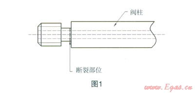 公司技術(shù)部門、施工管理部門會同施工方、設(shè)備廠家一起對調(diào)壓器進(jìn)行了拆解,經(jīng)過對兩臺調(diào)壓器進(jìn)行拆解,發(fā)現(xiàn)均為調(diào)壓器的閥桿斷裂,閥桿斷裂部位均在閥桿端部連接閥瓣的槽口處(見圖1)。