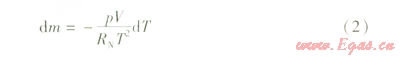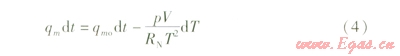 式(2)表示在壓力和體積不變的條件下,儲罐內(nèi)氣體溫度變化和質(zhì)量變化的關(guān)系。