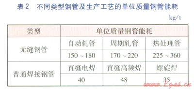 根據(jù)保溫管道工藝要求,DN 250mm及以下采用無(wú)縫鋼管(自動(dòng)軋管),DN 250mm以上采用螺旋焊鋼管。能耗數(shù)據(jù)采用平均水平,DN 100、200mm鋼管的單位質(zhì)量能耗取163kg/t,DN 500mm鋼管的單位質(zhì)量能耗取35kg/t。