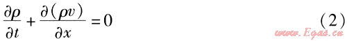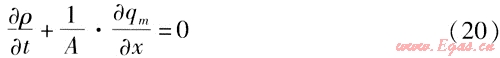燃?xì)庠诠艿乐械牧鲃邮遣环€(wěn)定流動,并且可看成一元流動,流體的壓力、密度、速度等參數(shù)是時間和管道長度的函數(shù)。以管道軸線方向為戈坐標(biāo),垂直于管道軸線為z坐標(biāo),可根據(jù)流體力學(xué)知識建立燃?xì)庠诠艿纼?nèi)流動的3個方程,具體如下[1]: