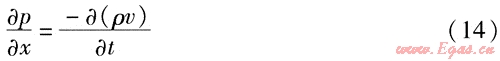 如果單位時間內(nèi)輸氣量的波動較大,就需要考慮動量方程中的慣性項,上述式(7)、(8)就變成如下形式: