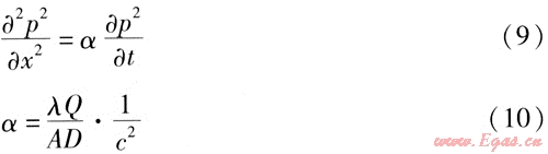 這是一個非線性拋物型方程,也是目前城市燃?xì)夤艿绖討B(tài)模擬中使用較廣泛的一個模型(以下簡稱模型1),可以用線性化的方法求得解析解。