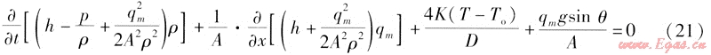 將上述3個方程、氣體狀態(tài)方程、特定的初始條件和邊界條件聯(lián)立方程組,理論上可以求解燃?xì)夤艿廊我晃恢?、任一時刻的壓力、密度、流速、溫度等參數(shù)。但是由于這是一組非線性偏微分方程組,很難求其精確的解析解。目前常求得的解析解都是在特定的條件下對模型簡化后得到的,因此,不具有普遍適用性。