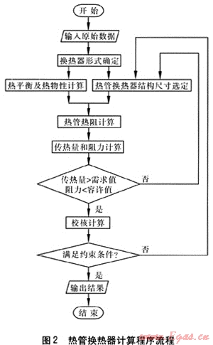 熱管換熱器計(jì)算程序主要分為以下模塊:已知傳熱量和一側(cè)溫度,求另一側(cè)溫度的迭代計(jì)算;各種翅片效率的解析計(jì)算;流體及工質(zhì)物性的數(shù)據(jù)庫查詢;熱平衡計(jì)算;各種結(jié)構(gòu)的傳熱量計(jì)算;阻力計(jì)算;結(jié)構(gòu)參數(shù)的確定;校核計(jì)算;結(jié)果保存及報(bào)表生成;AutoCAD出圖。