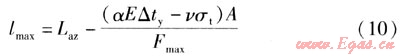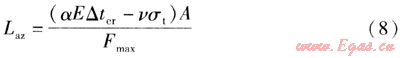管道循環(huán)溫差位于最大允許循環(huán)溫差和屈服溫差之間,但是由于此時局部穩(wěn)定控制循環(huán)溫差小于屈服溫差,因此仍不允許進(jìn)入錨固狀態(tài),管道的最大允許安裝長度計(jì)算見式(8)。