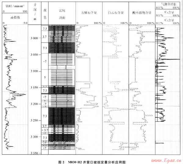 碳酸鹽巖定量分析技術(shù)實(shí)現(xiàn)了碳酸鹽巖成分解釋定量化,操作方便、結(jié)果準(zhǔn)確、分析速度快,為錄井工作者識(shí)別PDC鉆井、空氣鉆井等先進(jìn)鉆井工藝過程中攜帶出的巖屑提供了一個(gè)輔助工具,提高了錄井剖面質(zhì)量。該技術(shù)在四川盆地碳酸鹽巖重點(diǎn)探區(qū)的儲(chǔ)層巖性識(shí)別中取得了較好的效果。