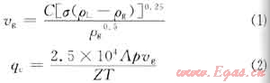 IPM用于計算臨界攜液流量的公式為: