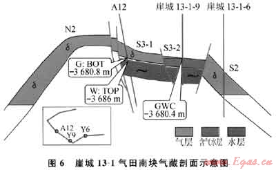 由于陵三段儲(chǔ)層厚,氣柱高度大,一直被認(rèn)為是具統(tǒng)一氣水邊界的均一氣藏。但氣田范圍內(nèi)發(fā)育許多斷層,因斷距較小,斷層的封堵性常未引起重視。隨著十幾年的持續(xù)開發(fā),氣田的動(dòng)靜儲(chǔ)量差別較大。在構(gòu)造南塊S3-1高部位的A12井,竟然在主力氣層出現(xiàn)水層,其氣水界面高出“統(tǒng)一”氣水界面276m,令所有研究者十分困惑。通過對該井壓力資料進(jìn)行分析,A12井區(qū)北側(cè)斷層Y3隨著生產(chǎn)壓力下降而開啟,開井時(shí)地層壓力系數(shù)只有0.7。為進(jìn)一步挖掘與S3-1相鄰的S3-2的儲(chǔ)量,又鉆了Y9井,結(jié)果更令人費(fèi)解,只鉆遇薄氣層及厚水層,與S3-2東側(cè)低部位的Y6井矛盾,因?yàn)閅6井無水層。經(jīng)小層對比,儲(chǔ)層橫向變化不大且斷層并不能斷開儲(chǔ)層段。