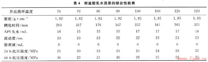 2.3.4耐鹽膠乳水泥漿綜合性能研究