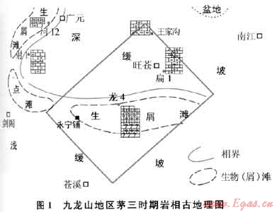 勘探實(shí)踐表明:川西九龍山地區(qū)下二疊統(tǒng)有利的儲(chǔ)集相帶為棲二段、茅三段灘相,這類(lèi)灘相沉積時(shí)水體較淺,大多為潮間和潮下的高能環(huán)境,各類(lèi)粒屑灰(云)巖較發(fā)育。由于這類(lèi)粒屑灰(云)巖的結(jié)構(gòu)較粗、質(zhì)純、性脆,故在沉積、成巖過(guò)程中易被改造而產(chǎn)生多種空隙,包括一些原生孔隙、各種次生孔隙和構(gòu)造裂縫,從而改善碳酸鹽巖的儲(chǔ)滲性能,成為油氣富集的有利場(chǎng)所。