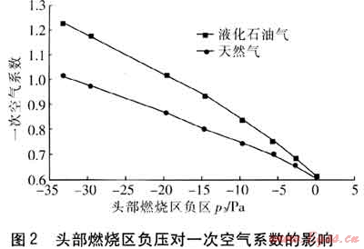 2 燃燒區(qū)負壓對大氣式燃燒器的影響