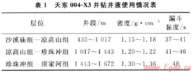 該井鉆井液使用情況如表1所示。